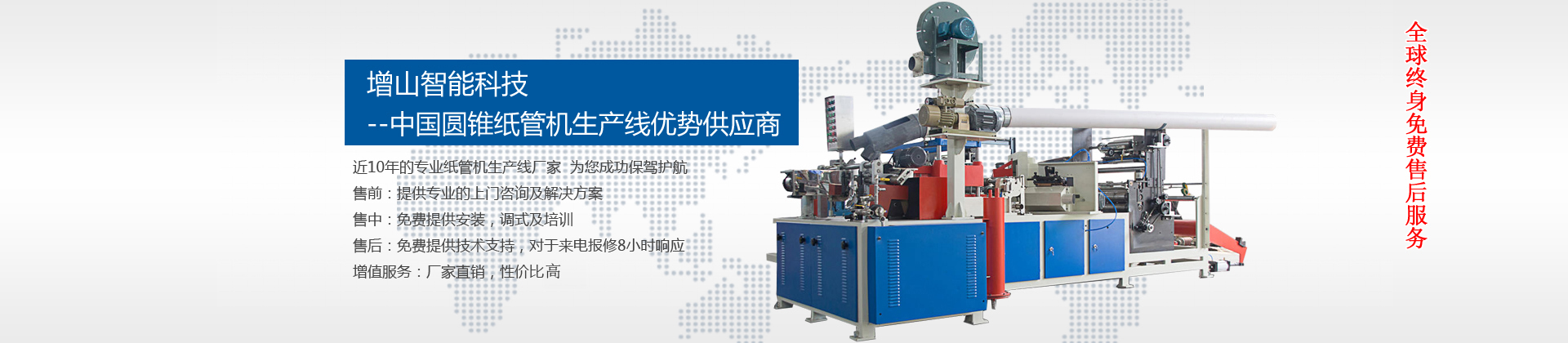 河北增山智能科技有限公司是數(shù)控機(jī)床、紙管設(shè)備、造紙機(jī)械、瓦楞紙箱設(shè)備、涂布機(jī)械的專業(yè)制造廠家。1990年與臺(tái)灣豪勵(lì)公司合資生產(chǎn)紡織用紗管、螺旋紗管,1992年開發(fā)推出半自動(dòng)圓錐紙管、螺旋紙管整…... [查看更多]